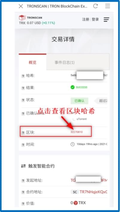 6.进入区块交易详情,点击区块旁的数字,会出现基本信息。