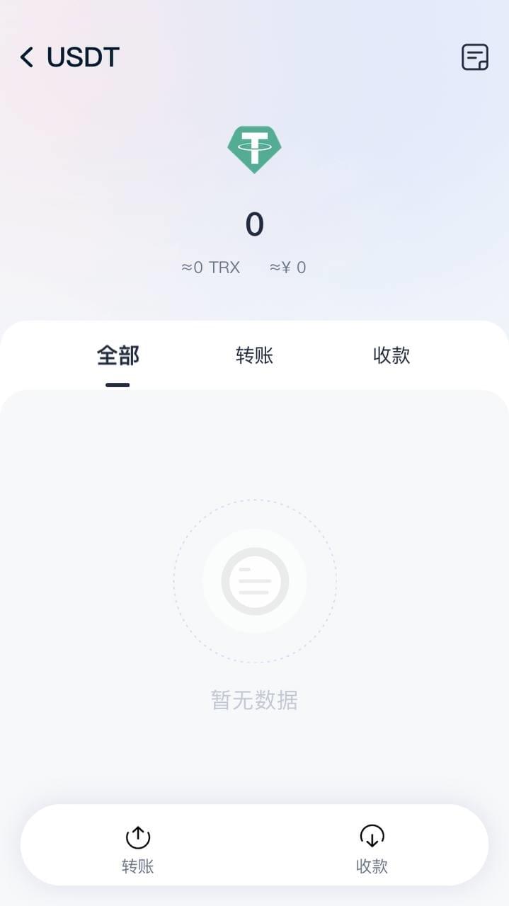 5.恭喜完成钱包设置,点击下方USDT选择转帐。
