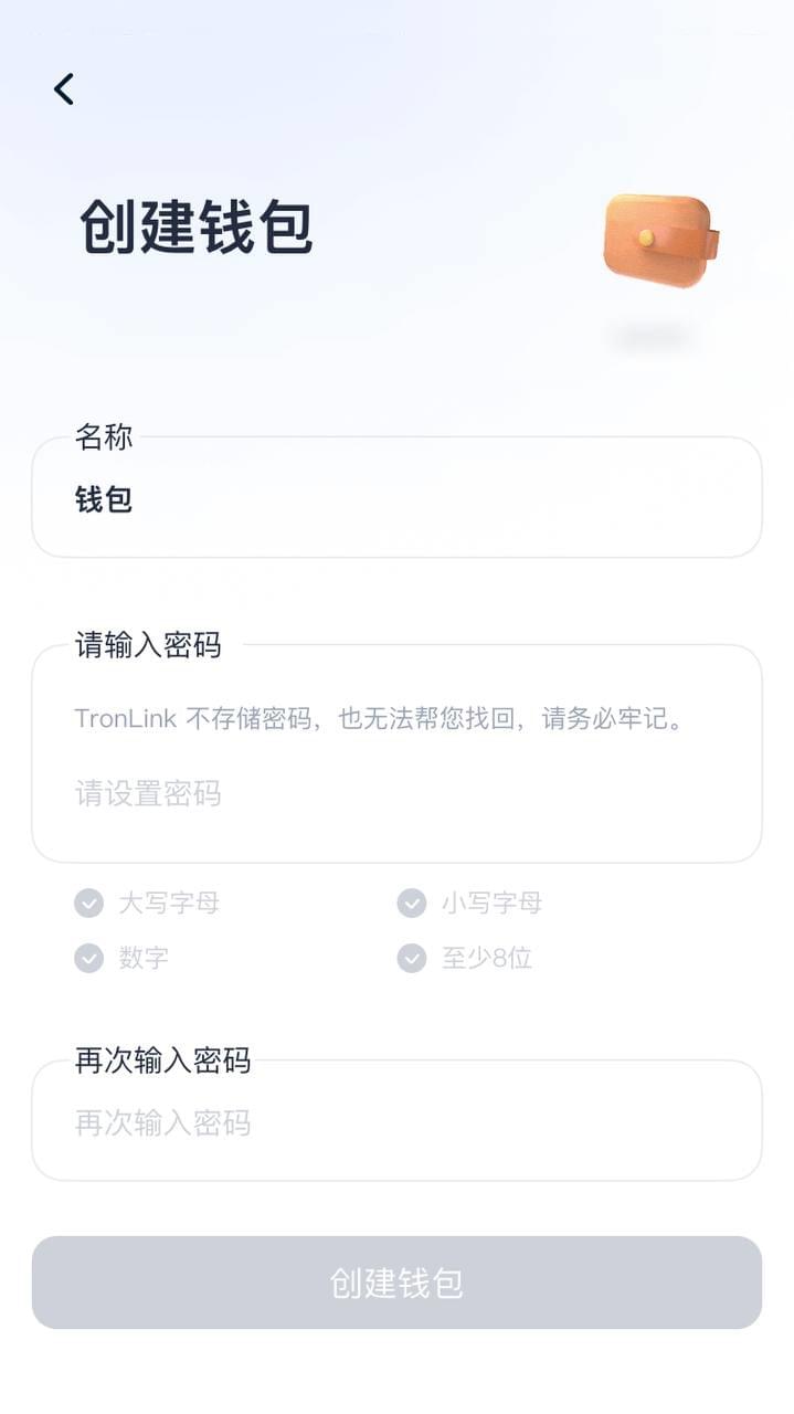 2.输入您的钱包名称以及密码,注意密码需英文大小写。